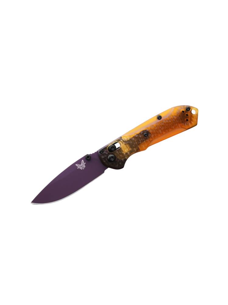 A limited edition released to commemorate the 2025 SHOT Show in Las Vegas, this special version of the 565 Mini Freek features handle scales made of topaz-colored Ultem, a high-performance polymer known for its strength and durability. Another distinctive feature is the M4 blade, finished with a «Purple Amethyst» Cerakote coating. This combination creates a unique collector’s item for all Benchmade enthusiasts!